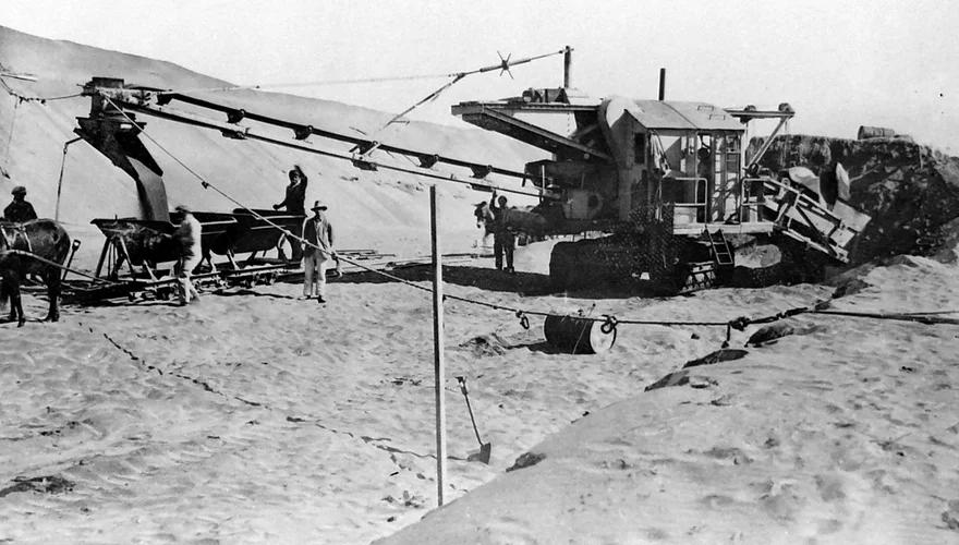 Right after the acquisition of the intellectual property rights in 1926, the first three bucket-wheel excavators were supplied to a diamond mine in Southern Africa.