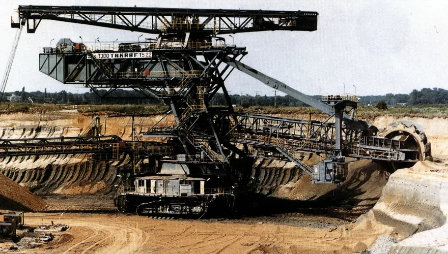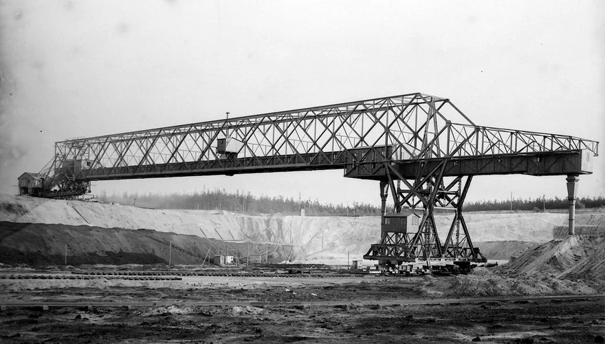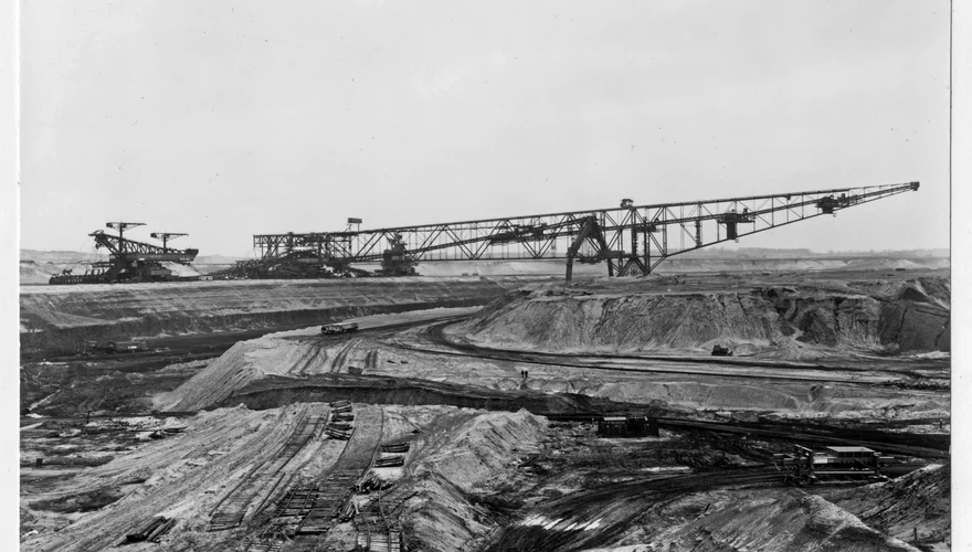 ATG, originally based in Leipzig and later merged into the Lauchhammer works, developed the first overburden conveyor bridge for a lignite mine near Lauchhammer. The machine could remove 10 m of overburden in one cut.