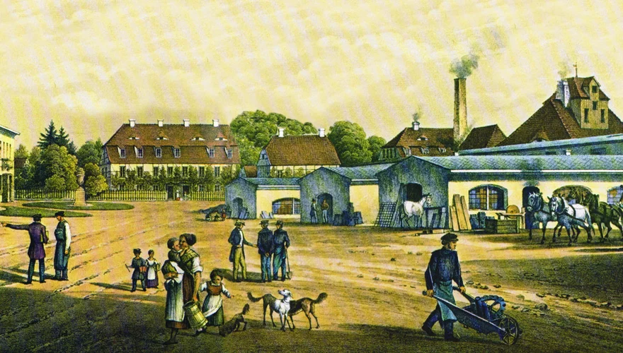 Commissioning of the first blast furnace, and therewith, the beginning of manufacture of wrought iron and cast goods in the newly founded “Lauchhammer”.