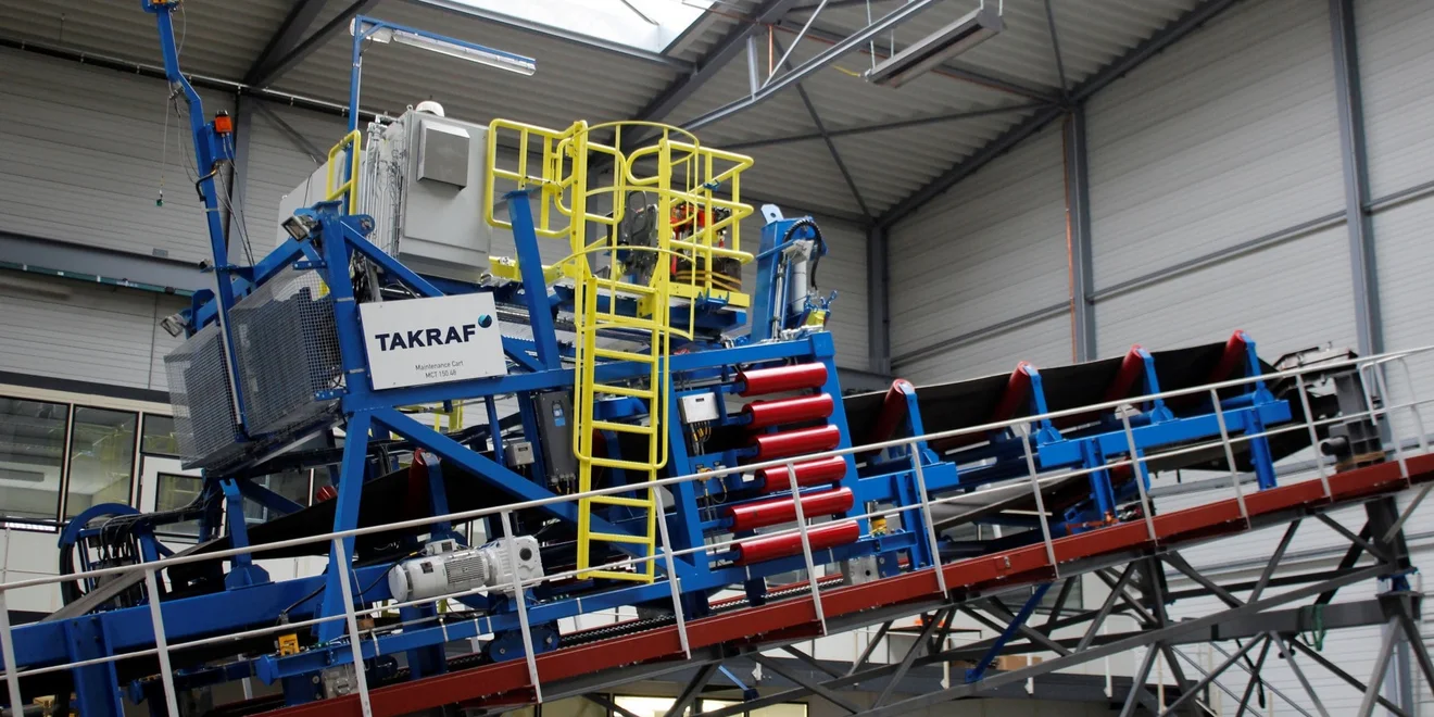 A TAKRAF Maintenance Cart (rail-mounted service vehicle) was supplied for safely replacing conveyor…