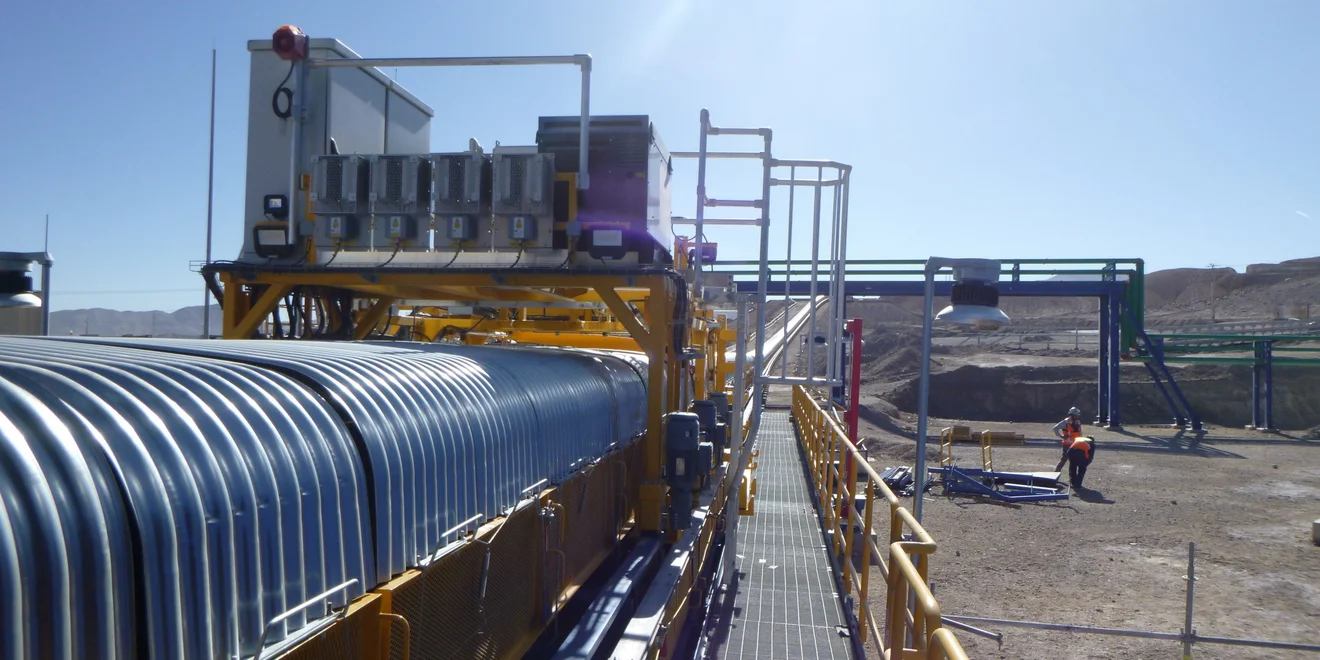 Depending on the maximum incline of the conveyor, the cart can employ either a friction based drive concept with driven wheels or a form-fitting drive concept such as a chain drive system. Various power supply options are also available, ranging from a diesel generator to a power rail next to the conveyor.