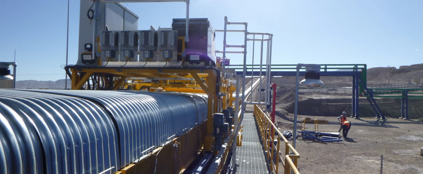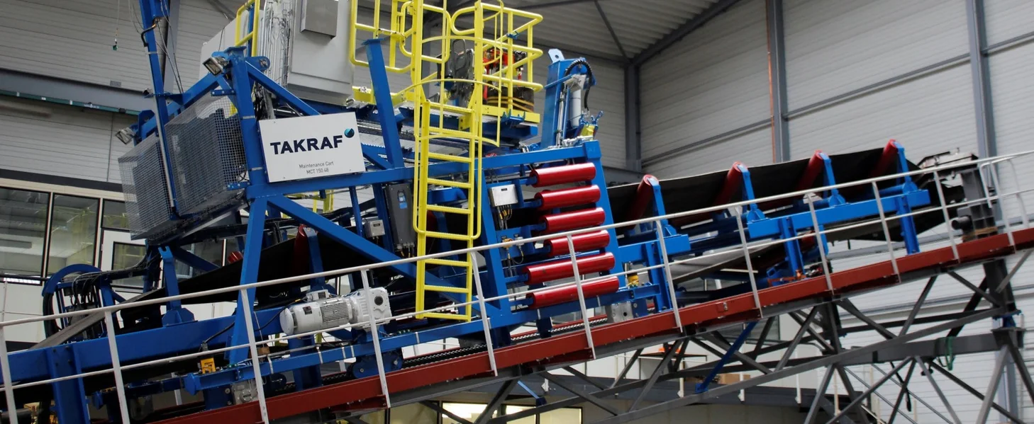 A TAKRAF Maintenance Cart (rail-mounted service vehicle) was supplied for safely replacing conveyor…