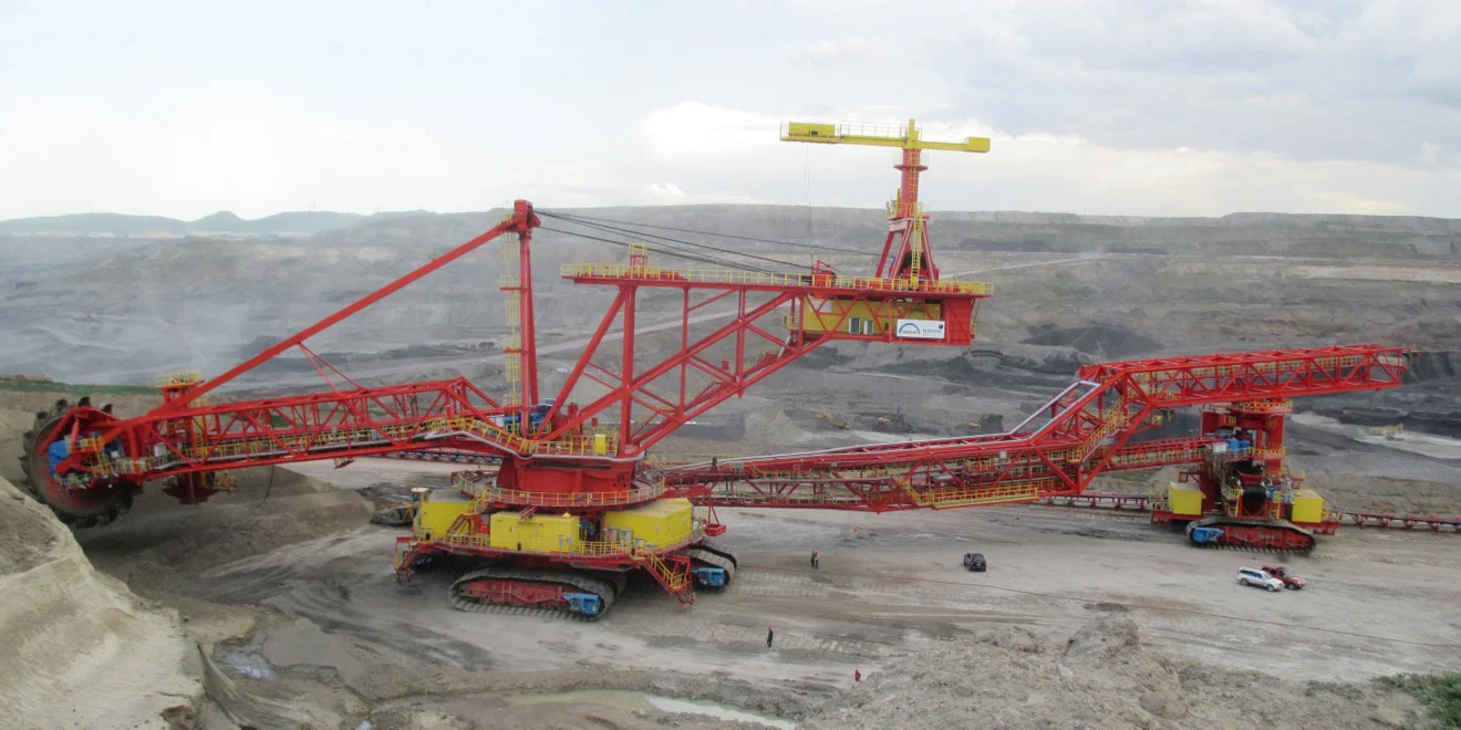 The machine is in use for excavating overburden in a coal mine in Inner Mongolia. Due to the extreme conditions with temperatures down to minus 40° C, this type of bucket- wheel excavator has a special design of mechanical and electrical parts. The excavator serves as the key member of a complete TAKRAF overburden system with four conveyors and a spreader in the waste dump area.