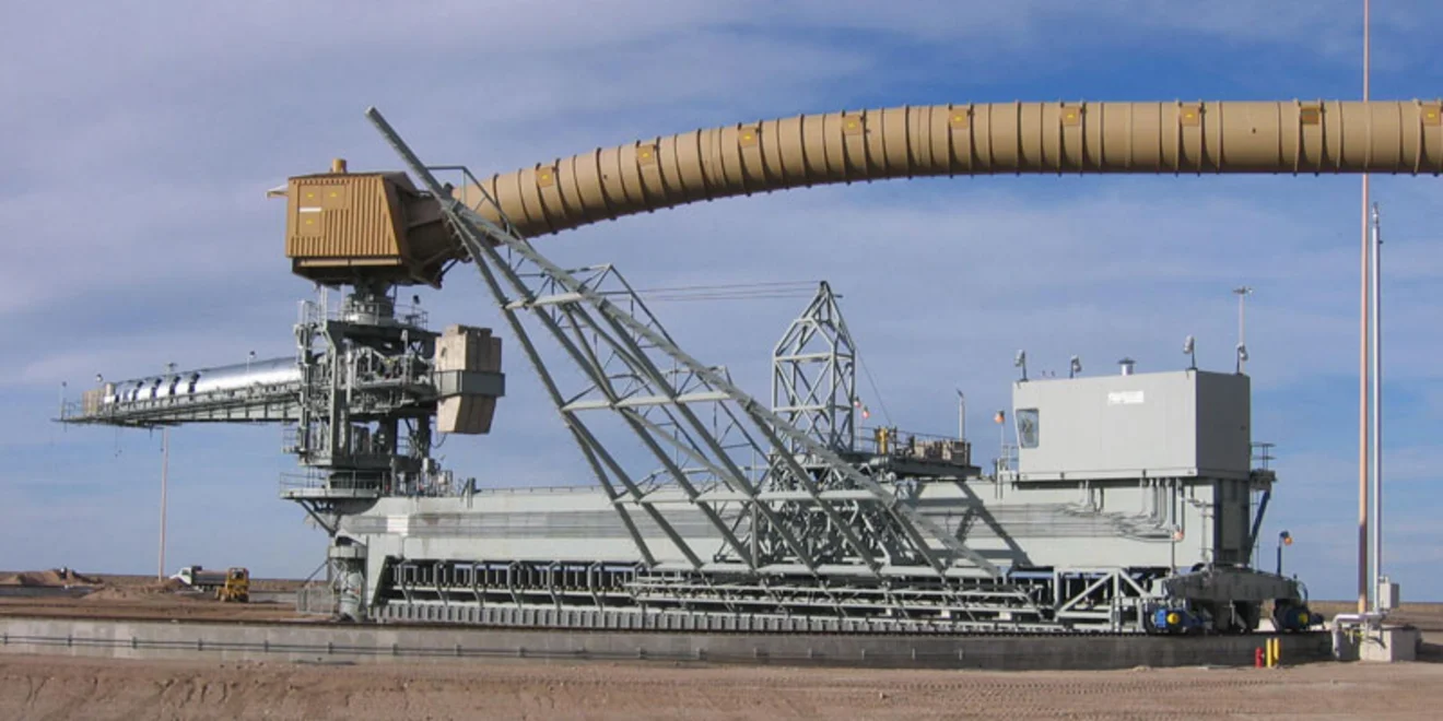 The storage bed with the circular stacker reclaimer is part of a coal handling system providing thermal coal to the 400 MW unit 3 of Springerville power plant.