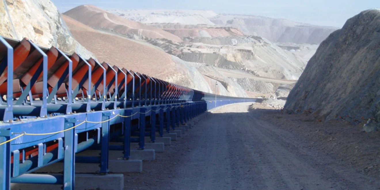 Copper ore is moved from the crusher to the processing facilities via an overland conveyor with an 8,120 m pulley center distance, following the natural ground profile and with 63% of its length following horizontal curves with up to 17° banking angles.