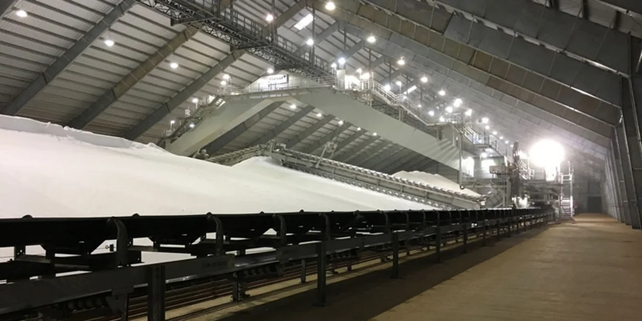 TAKRAF was awarded the turnkey project to design and supply a complete urea handling system, including a portal reclaimer for indoor operation, a storage building, several tube conveyors, and a railcar and truck loading station.