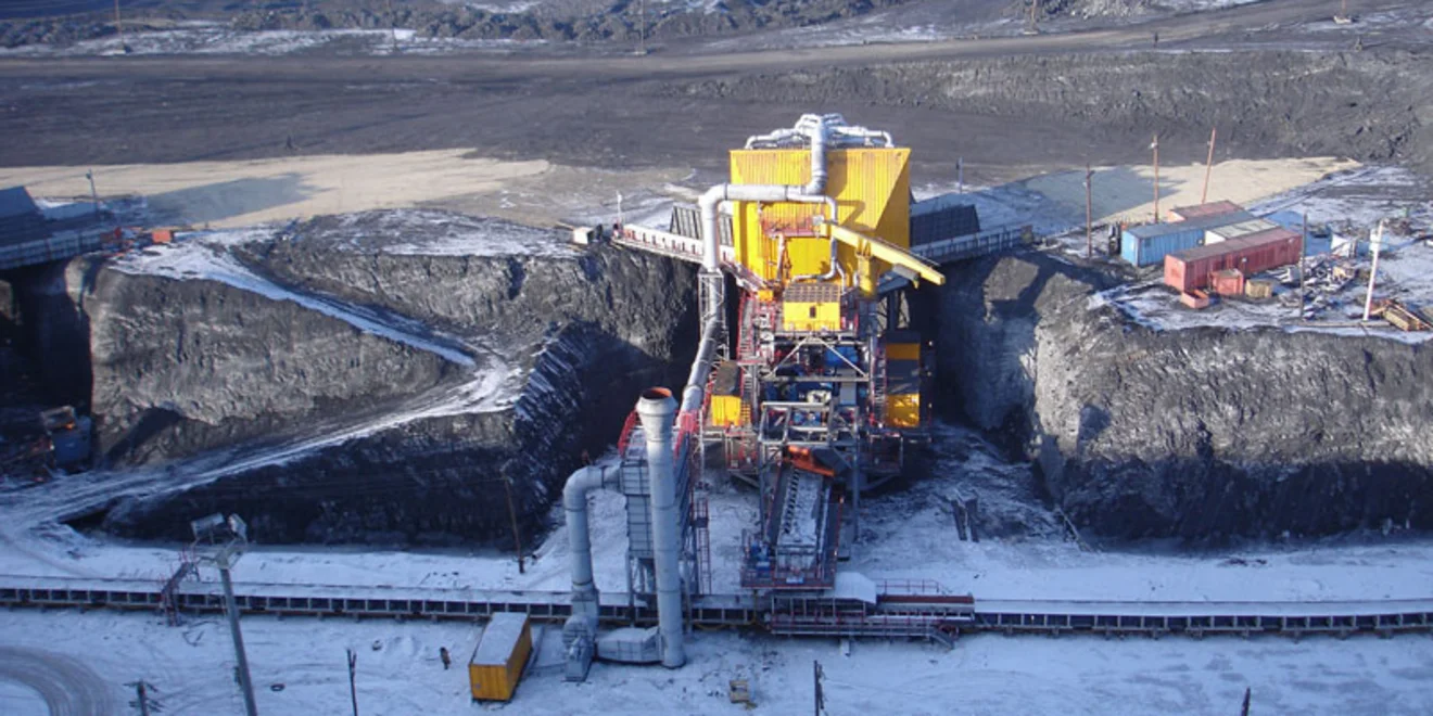 Highlights of this semi-mobile plant: truck bridges, overhead building, TAKRAF Apron Feeder, TAKRAF Crusher, cold weather design and dust collection system.