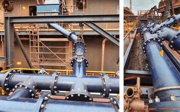 Both filters were designed to achieve maximum recovery of water and produce a drier filter cake. However, in the case of the 162 m2 horizontal belt filter, the water is removed from the cake to repulp with acid in the downstream unit operation in preparation for the leaching process.