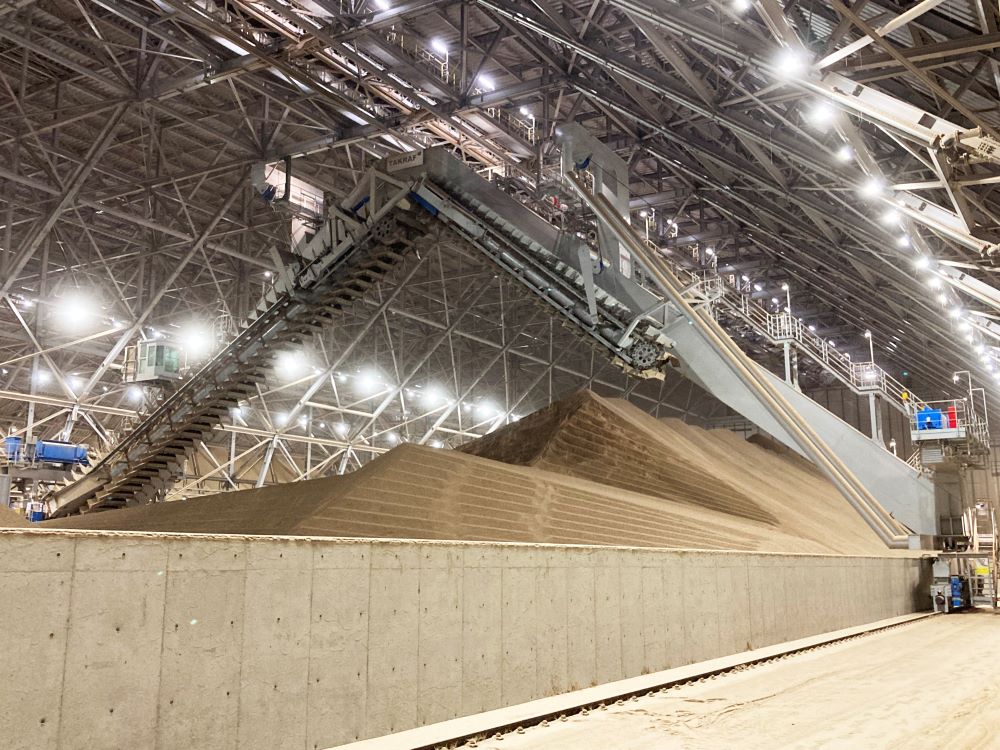 This advanced new plant will be fired by a combination of thermal coal and woodchips / biomass with our TAKRAF scraper reclaimers located within the multi-commodity warehouse, which is divided into two sites (North and South). The reclaiming system is able to convey material from one warehouse to the other, which means that with this flexibility, the system can be used to restore or if required mix material. Due to the redundancy required - two reclaimers are required to work on the same rail in the same warehouse - a dedicated safety and anti-collision system was implemented and extensively tested.