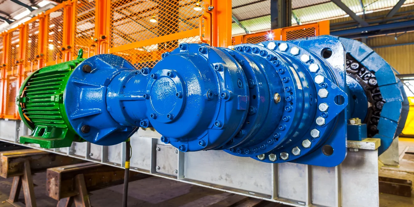 Electromechanical drives incorporate a planetary gearbox with additional bevel stage. The motor is supported by an integrated flange or motor consol attached to the gearbox. Hydraulic power units for hydraulic drives are provided as separate self-containing installations.