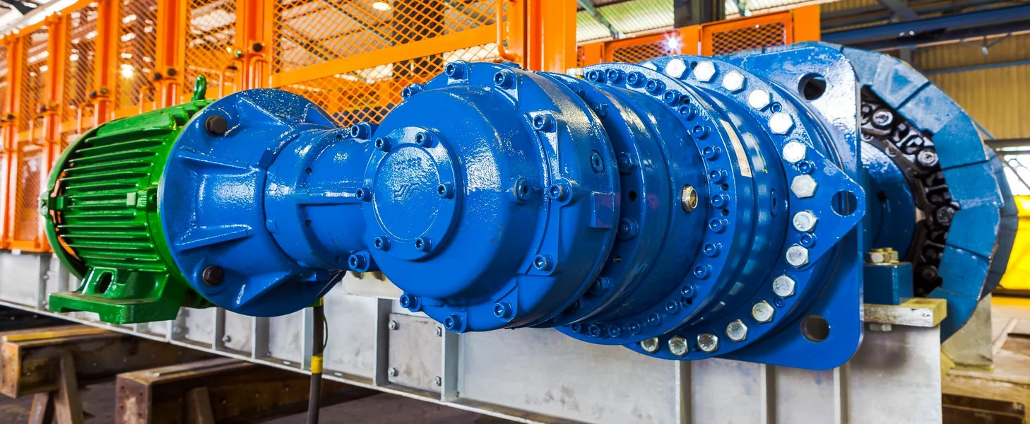 Electromechanical drives incorporate a planetary gearbox with additional bevel stage. The motor is supported by an integrated flange or motor consol attached to the gearbox. Hydraulic power units for hydraulic drives are provided as separate self-containing installations.