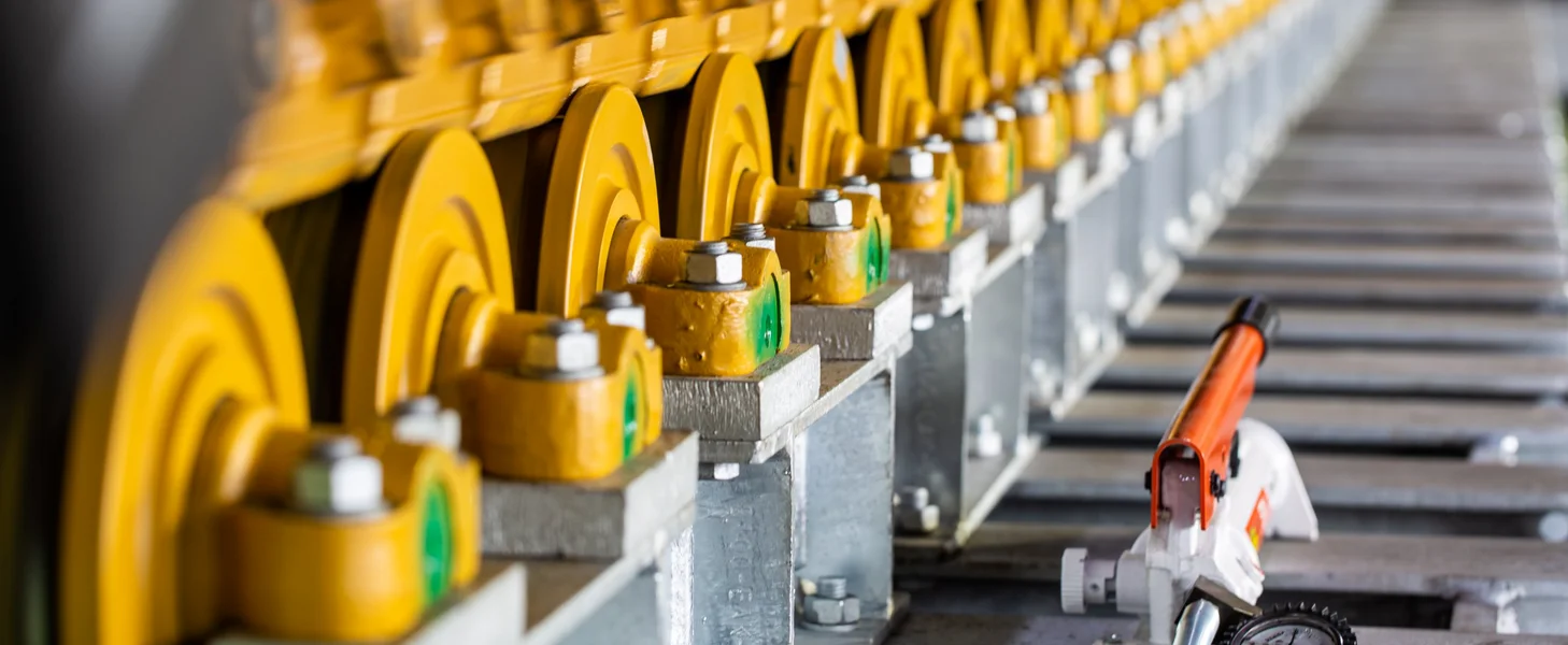 The main frame is manufactured from welded heavy steel sections, to provide a unitised sturdy construction. Impact rails are incorporated into the frame to support the carrying flight deck under abnormal impact. Return rollers are contained within the frame or attached to the pans.