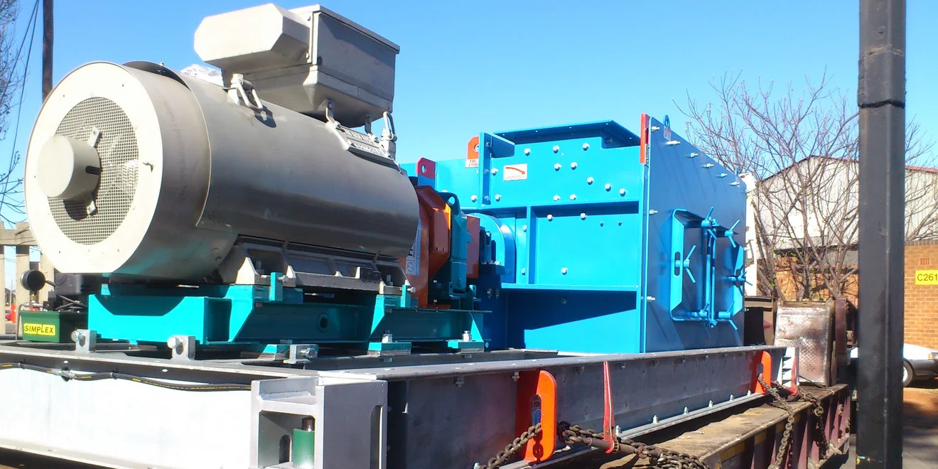 - Entire rear quadrant opens exposing rotor assembly and crushing chamber
