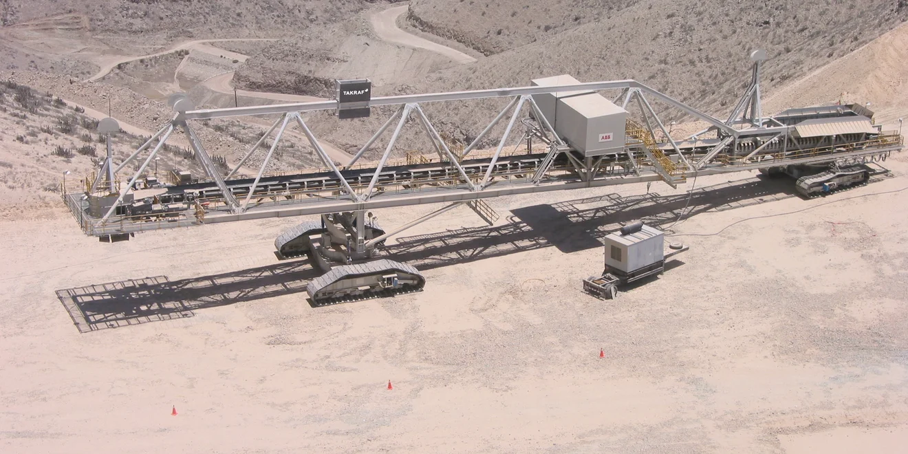 TAKRAF Mobile Conveyor Bridges are crawler-mounted machines and operate as flexible links between various mining machines and bench conveyors, increasing the operating range of the entire system.
