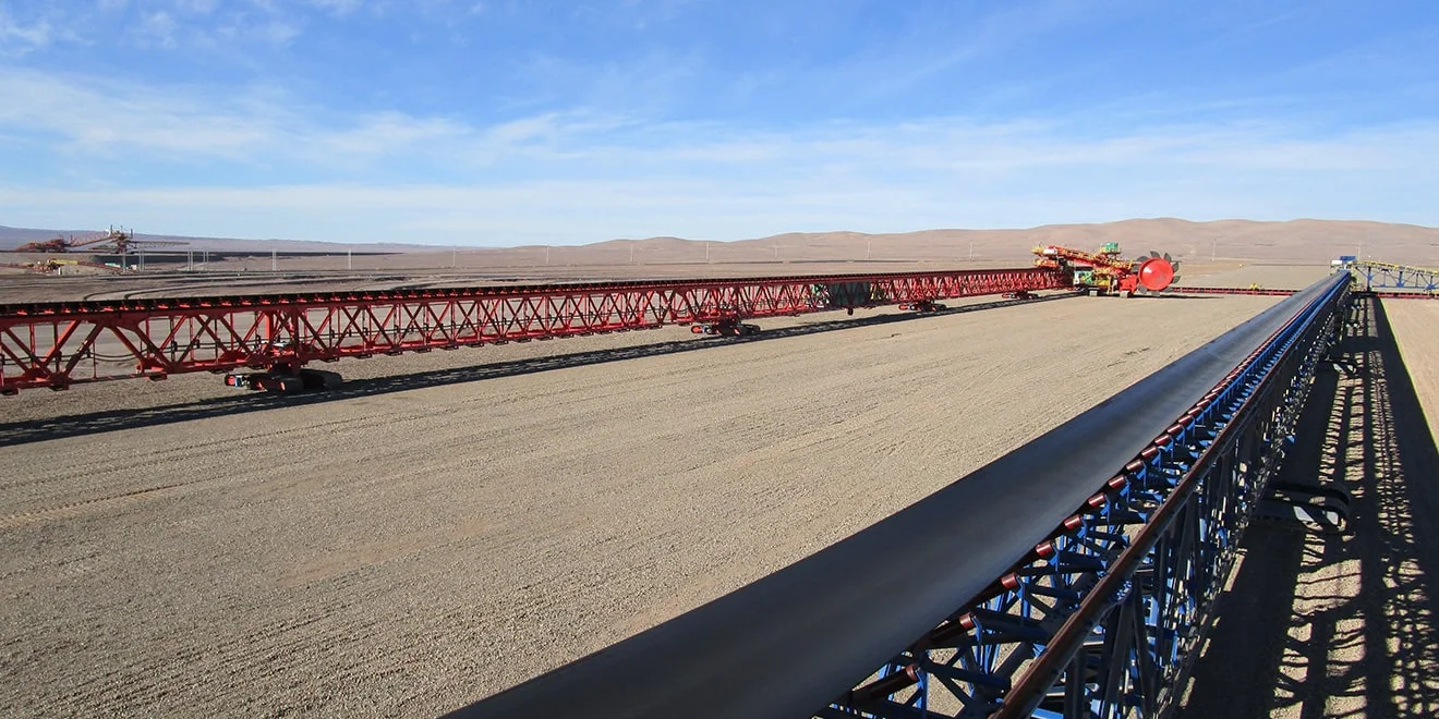 MRBs consist of several up to 76 m long straight-connected bridge segments with separate single or double crawlers and a single bridge belt conveyor. The material is reclaimed by an attached leach pad reclaimer, which is integrated into a hopper car traveling across the entire bridge length.