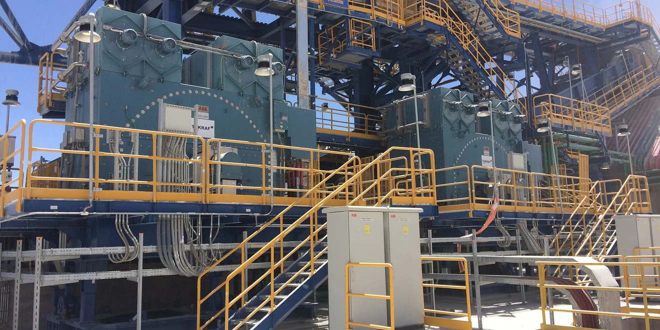 Gearless drives eliminate the need for a gearbox, thereby significantly reducing the number of main wear parts, which results in increased efficiency and reliability, as well as less maintenance being required. Further advantages include a considerable reduction in the drive system’s footprint and emissions. For a copper mine in Chile, studies showed that CO2 emissions were reduced by 66% as compared to diesel truck engines for the same copper production volume.